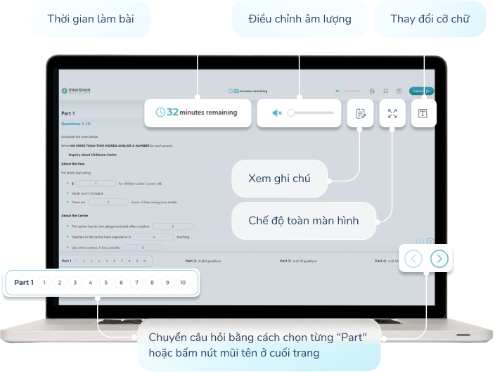 The practice test interface on the IELTS AI Test is identical to the real IELTS exam, helping learners get familiar with the structure and exam format.